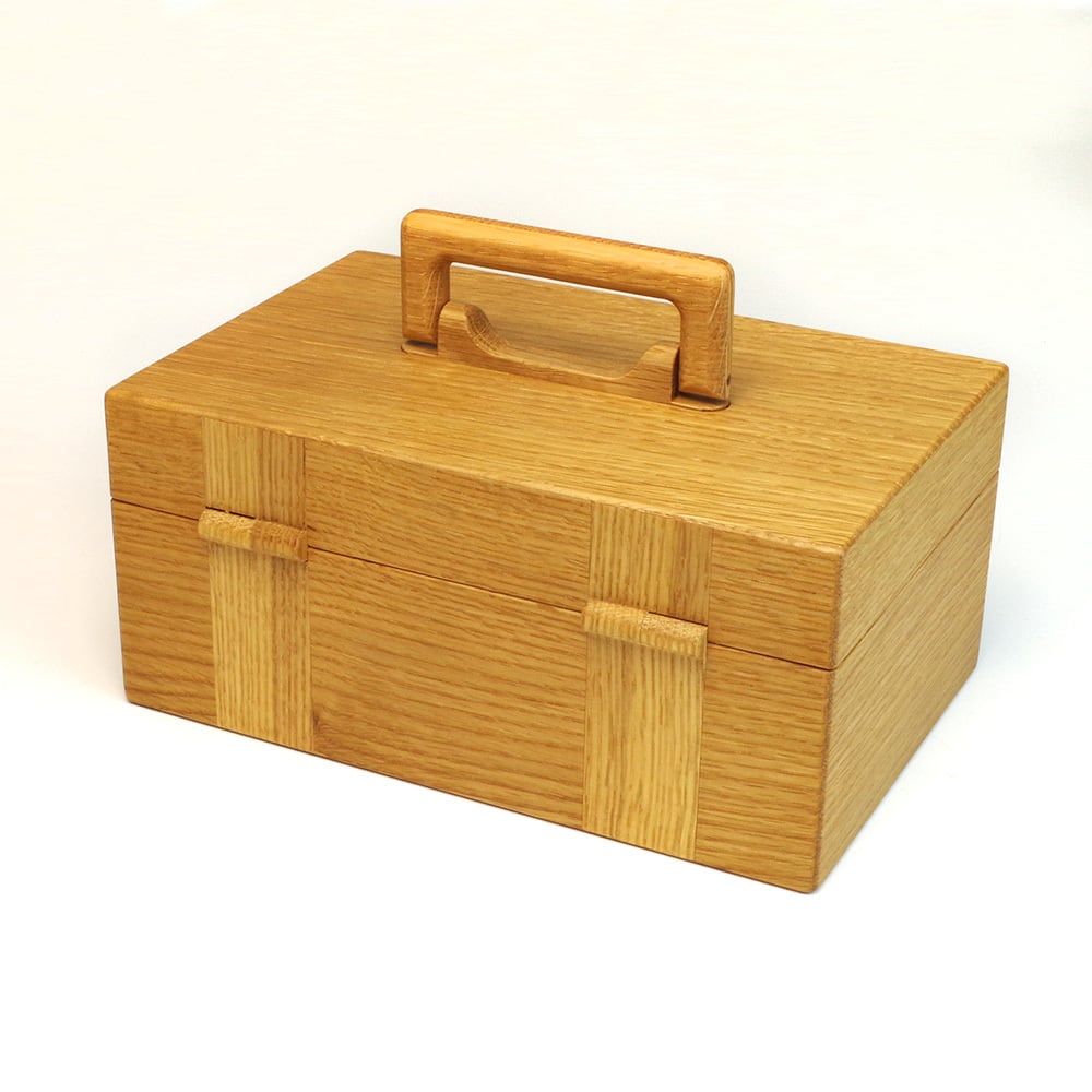 木製の取っ手と蝶番が印象的な「手さげ木箱」/ナラ材